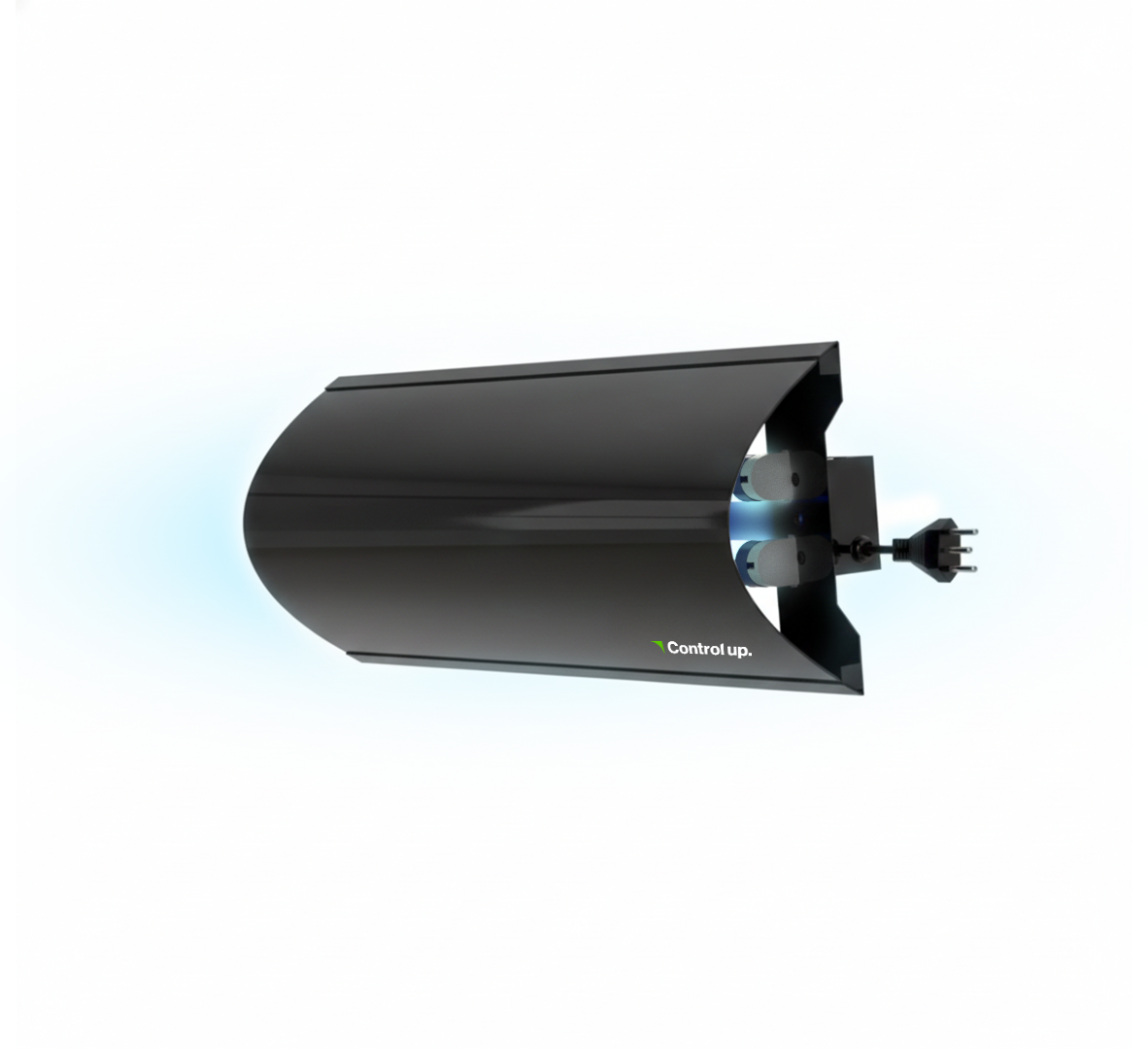 Pico de luz em 365 nm (UV-A) atrai os insetos; a placa adesiva captura de forma higiênica e silenciosa.